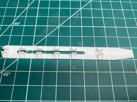 This part is printed using resin material and a SLA printer. It has been processed post printing to remove residual resin and support material. Final finishing is straightforward. Minimal sanding with superfine sandpaper is usually all that is required. If there is residual uncured resin present it should be removed prior to finishing. Wiping the part down with a microfiber cloth soaked with isopropyl alcohol is recommended. Let the part air dry completely before proceeding. Applying a primer is needed before final painting. Tamiya brand primer is strongly recommended. Recommended adhesives are standard epoxies or cyanoacrylate. Epoxies will give the most durable adhesion. Other adhesives will not work and may destroy the print.
