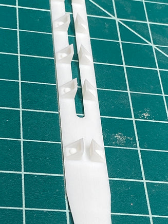 Set of four 3D printed fin supports to enhance the scale properties of the Doorknob Kit. It features the fin supports featured in the prototype instead of the black decals featured in the kit. Compatible with the balsa fins and paper centering rings in the kit or our upgraded laser cut fins and centering rings.