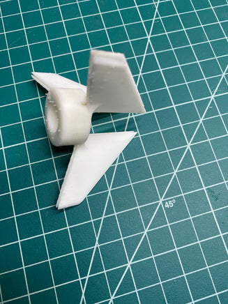 This kit is an entry-level kit to allow you to compete in parachute, streamer, and helicopter duration flying under FAI rules.  FAI rules for duration events such as parachute, streamer, and helicopter duration are different than NAR rules in that the airframe has specifications for length and diameter.  The SK 369 is designed to meet these specifications.  It can be used for S3A (A parachute duration), S6A (A streamer duration), and S9A (A helicopter duration) events flow with 13mm Estes motors.  The airframes are made from cardstock and standard body tubes and are prefabricated.  Fins are laser cut from 1/16" balsa and only require sanding and attachment to the airframe with adhesive.  Use of our FAI Fin Jig to do this is highly recommended.  A vacu-formed nose cone, ejection plug, and Kevlar shock cord are included.  No recovery system is supplied.  No finishing is required.  The completed kit without motors or recovery system weighs 12 gm. The FAI Fin Jig is an inexpensive but efficient tool to aid with building the SK369 FAI Competition Model Kit. It allows you to attach three fins that are 1/16" thick on a BT-5 body tube. It also provides for an offset of the fins from the end of the body tube to allow for motors to be taped to the tube. It is 3D printed with the same smooth finish material that we use for our scale parts.